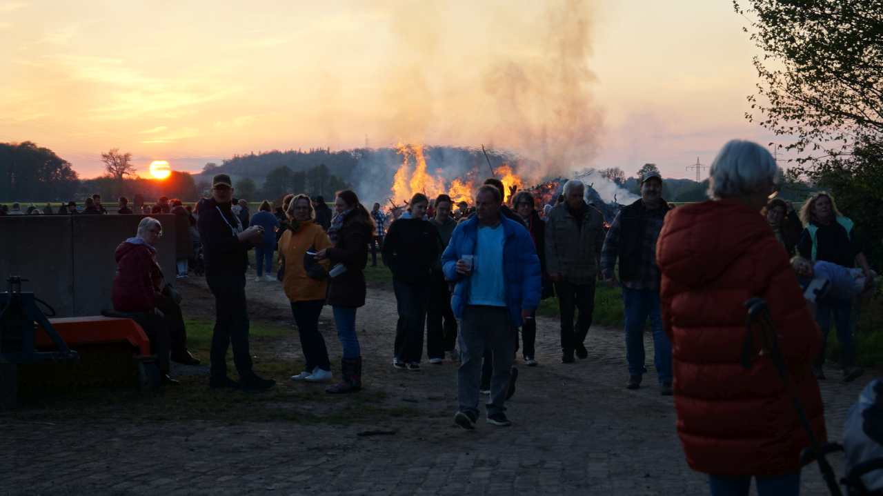 Gegen 19:45 Uhr wurde das Osterfeuer bei untergehender Sonne über dem Calenberger Land entzündet. Die Flammen und der Rauch waren weit über die Dorfgrenzen hinaus sichtbar – ein beeindruckendes Schauspiel in der Abendsonne. Bei klarem Himmel und untergehender Sonne entstand so eine besonders stimmungsvolle Atmosphäre.